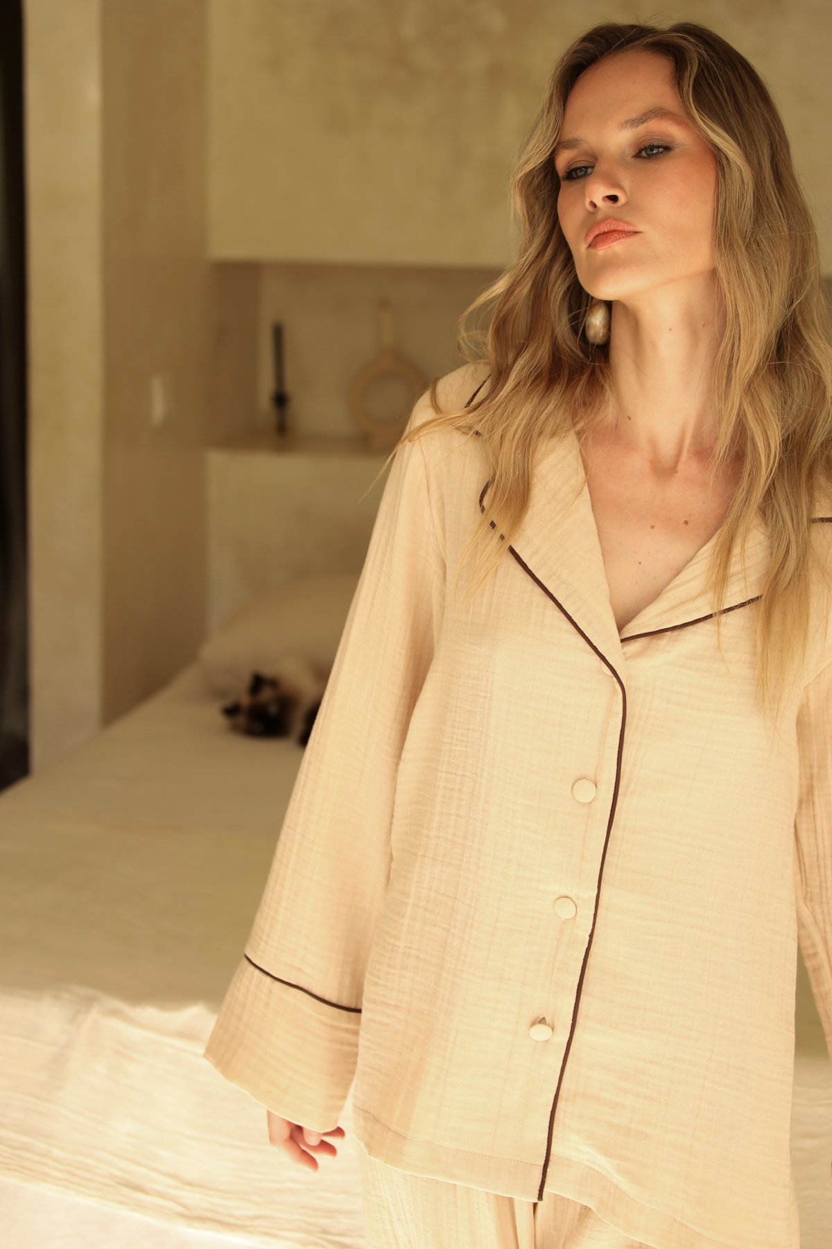 - UZUN KOLLU GÖMLEK ÜST VE BELİ LASTİKLİ
