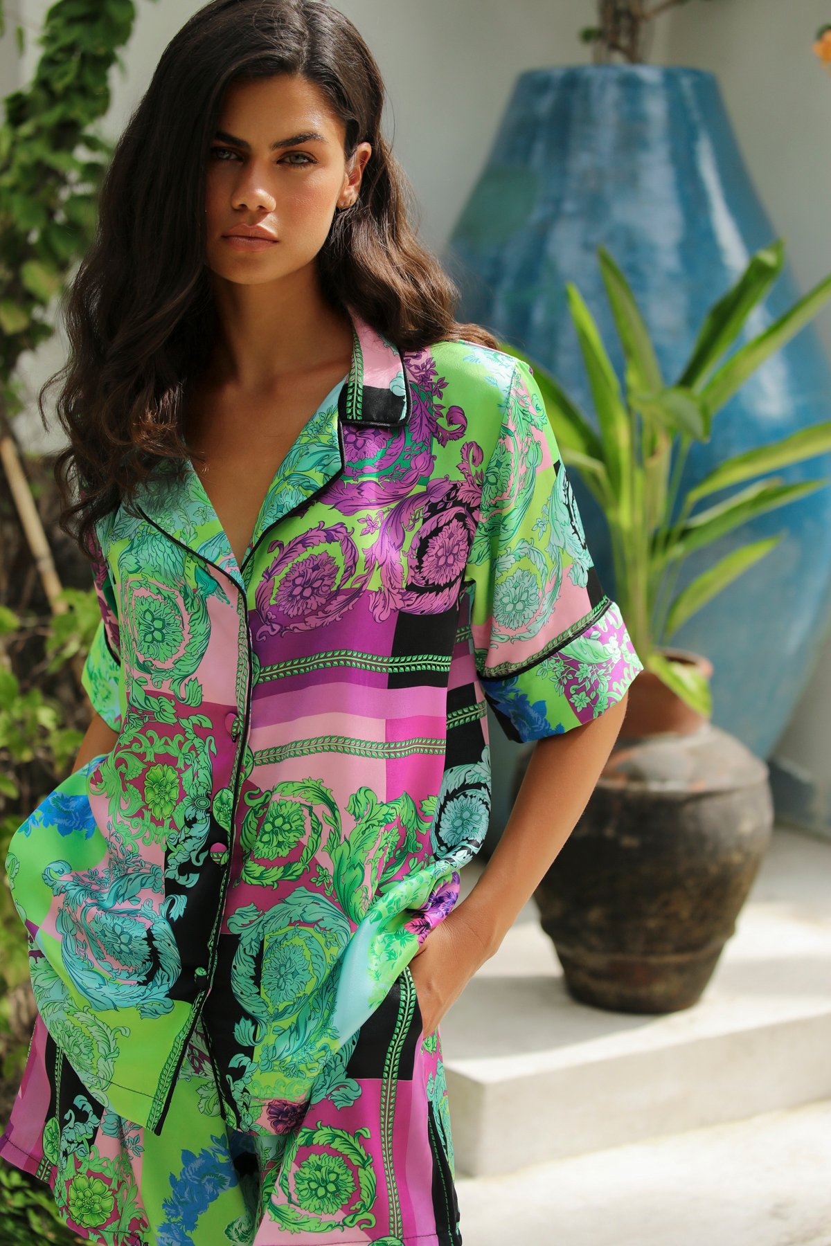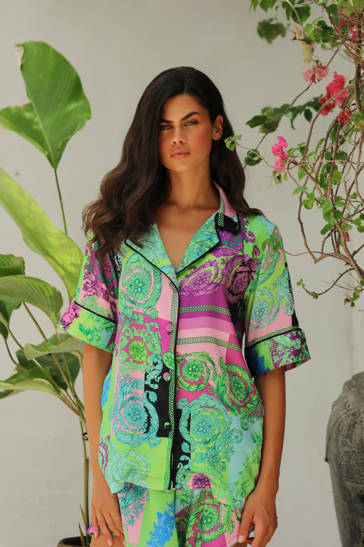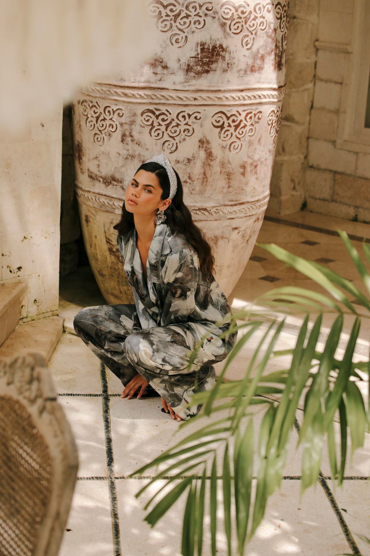 - ŞAL YAKA VE SATEN KUŞAKLI ÜST