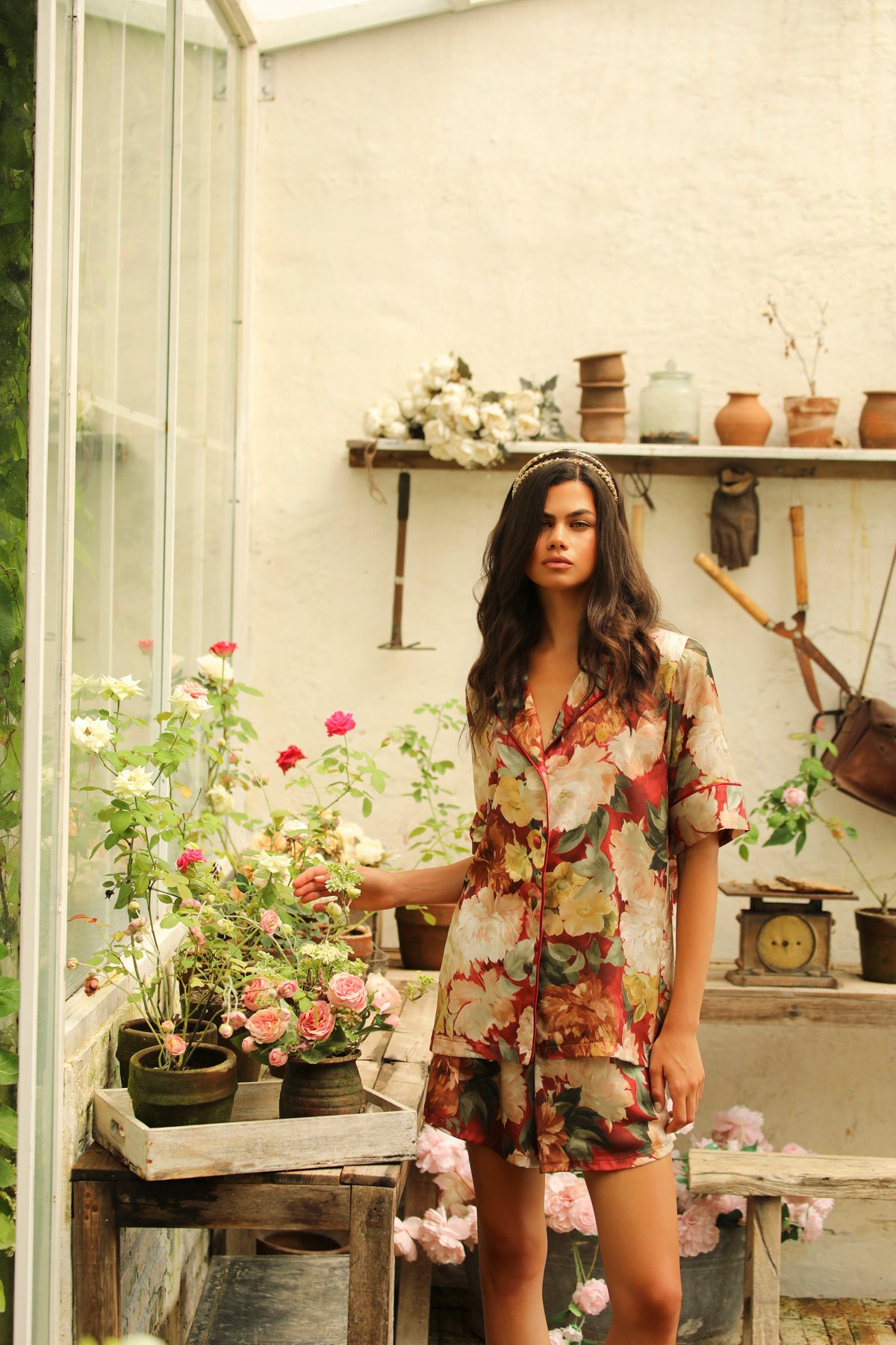 BALİ’nin zarif doğasında hayat bulan JARDIN SECRET KISA KOLLU GÖMLEK ÜST ile stilinize doğallık ve zarafet katın. %100 İPEK SATEN kumaşın sunduğu nefes alan yapısı sayesinde gün boyu ferah kalın.