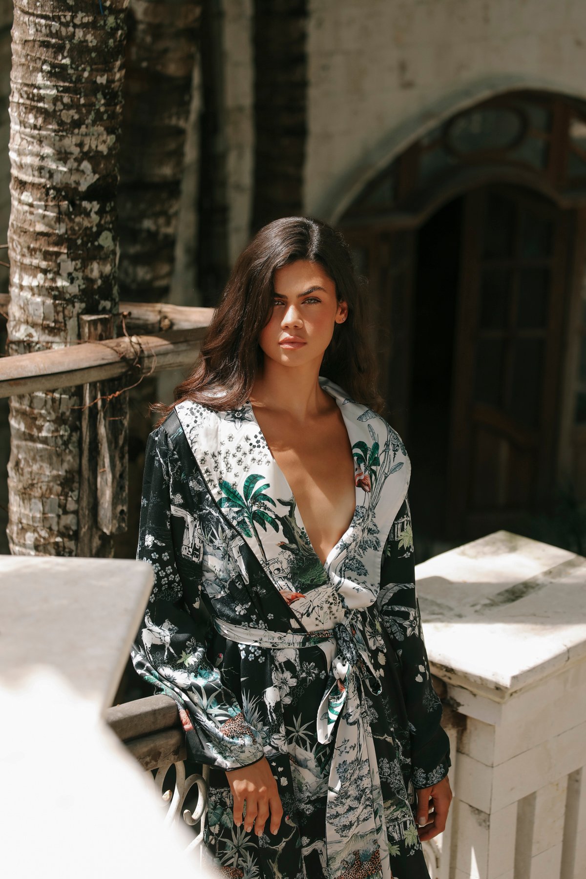 Lionne Noır Çift Taraflı Uzun Kimono Sabahlık