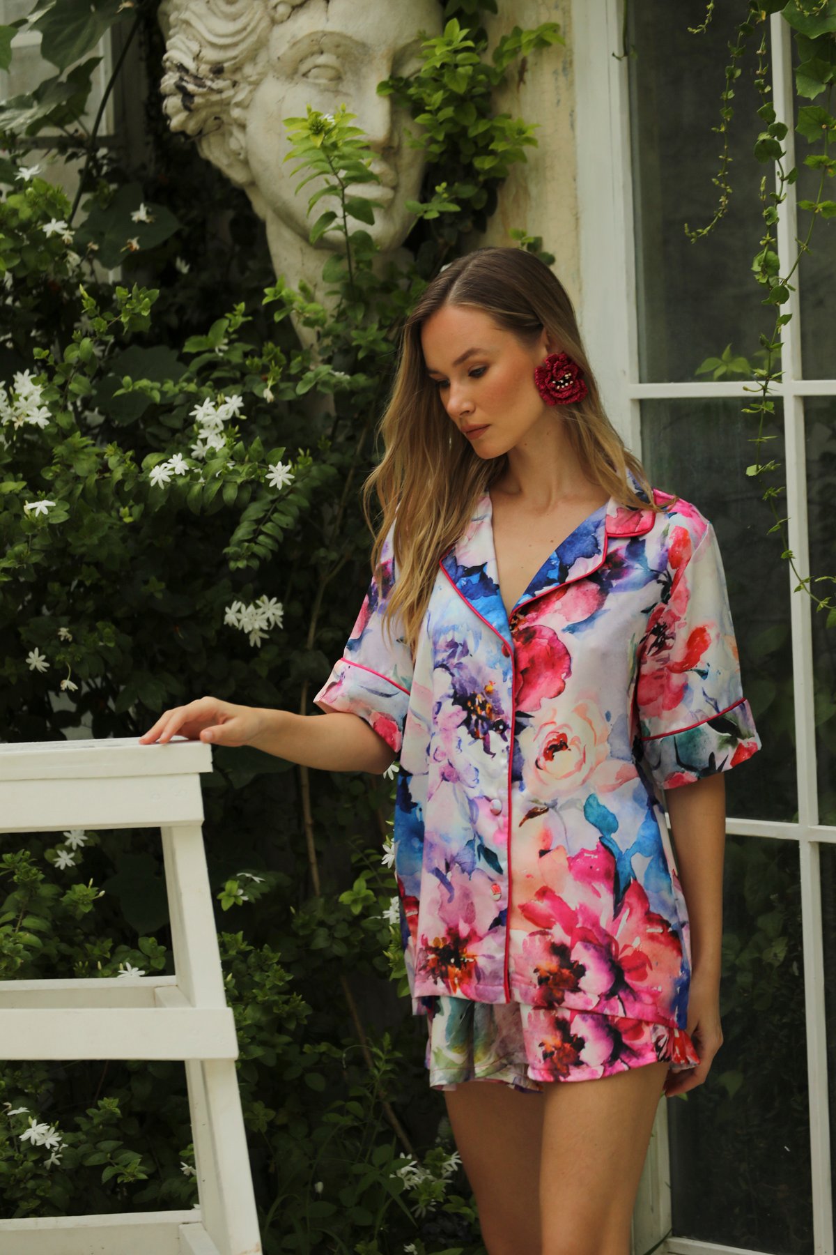 BALİ’nin zarif doğasında hayat bulan ROSALIE ŞORT TAKIM ile stilinize doğallık ve zarafet katın. %100 İPEK SATEN kumaşın sunduğu nefes alan yapısı sayesinde gün boyu ferah kalın.