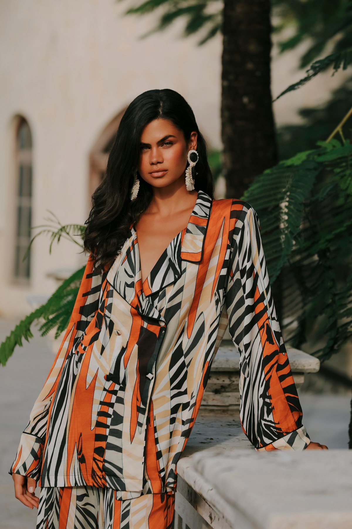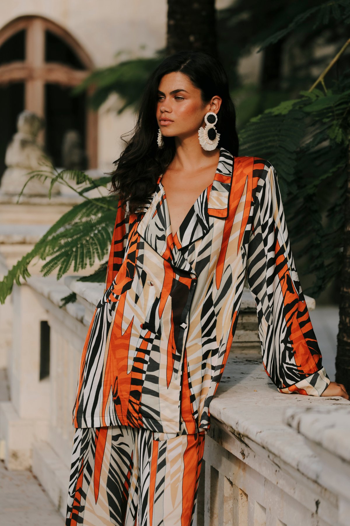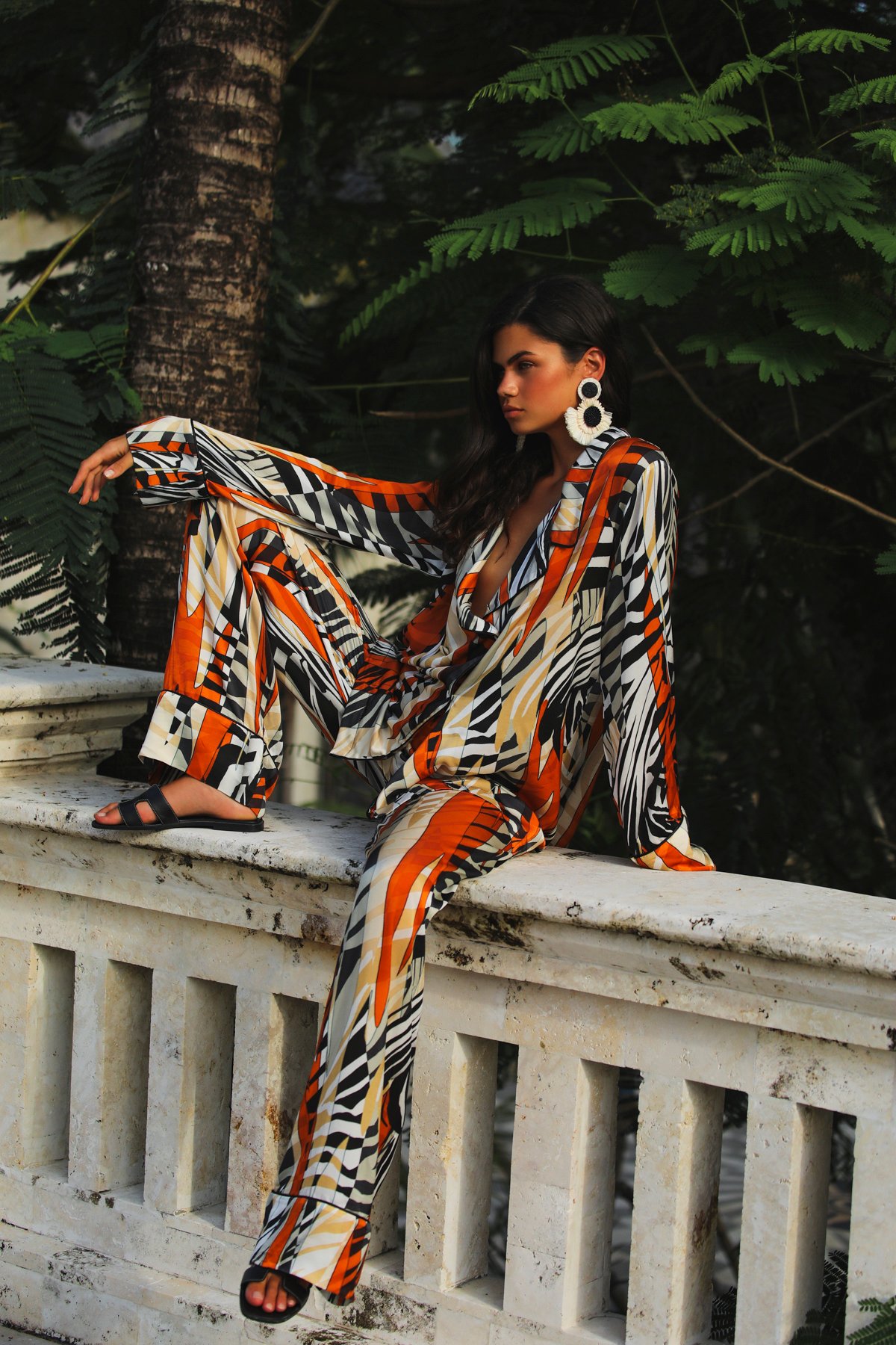 SAUVAGE İPEK PANTOLON TAKIM – %100 İPEK SATEN TURUNCU-SİYAH